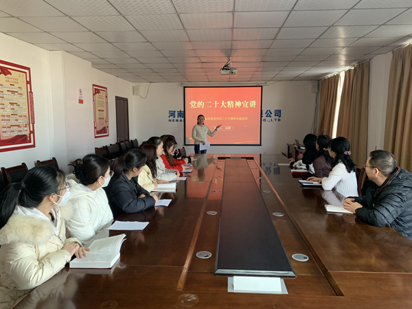 為扎實(shí)開展黨的二十大精神宣講工作,2月28日,公路港集團(tuán)宣講小分隊(duì)成員岳璐同志為集團(tuán)所屬商貿(mào)公司支部及實(shí)業(yè)聯(lián)合支部黨員干部宣講黨的二十大精神。
