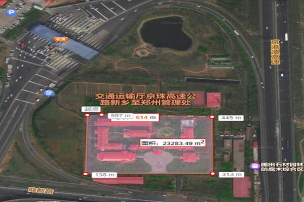 新鄭管理處俯視衛(wèi)星圖 土地遙測面積152畝,已用辦公區(qū)域40畝,可利用面積112畝