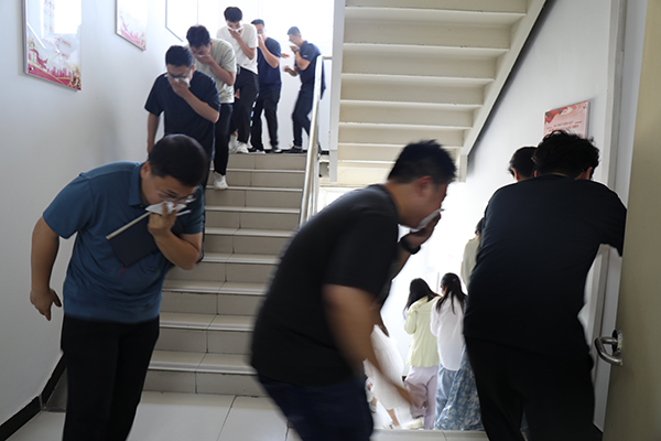 隨著刺耳的警報(bào)聲迅速響起,全體職工在指揮人員的指導(dǎo)下紛紛拿出毛巾捂住口鼻,沿著既定的逃生通道快速、有序地向安全地點(diǎn)撤離。到達(dá)指定位置后,指定人員立即清點(diǎn)人數(shù),向現(xiàn)場(chǎng)指揮匯報(bào),確保每一位職工的人身安全。整個(gè)過程井然有序,快速高效,耗時(shí)不到1分鐘。