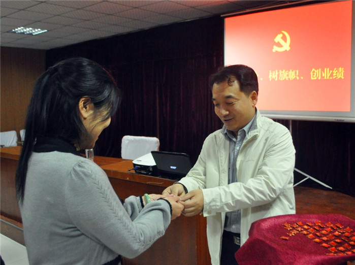 4月9日,公路港集團(tuán)第一支部召開了第三次黨的群眾路線教育實(shí)踐活動(dòng)黨員會(huì)議,一支部全體黨員、集團(tuán)督導(dǎo)組參加了會(huì)議。 會(huì)上,支部書記領(lǐng)學(xué)《黨章》節(jié)選,并結(jié)合近期學(xué)習(xí)計(jì)劃,對(duì)支部全體黨員提出要求,一是撰寫黨課學(xué)習(xí)心得,二是深入自學(xué)《黨章》、黨的群眾路線教育實(shí)踐活動(dòng)相關(guān)知識(shí)測(cè)試題,三是支部黨員查擺“四個(gè)方面問題”并撰寫報(bào)告。 會(huì)后,集團(tuán)黨委書記高波為一支部全體黨員配發(fā)黨徽,要求黨員亮明身份,時(shí)刻銘記黨員義務(wù),接受群眾監(jiān)督。