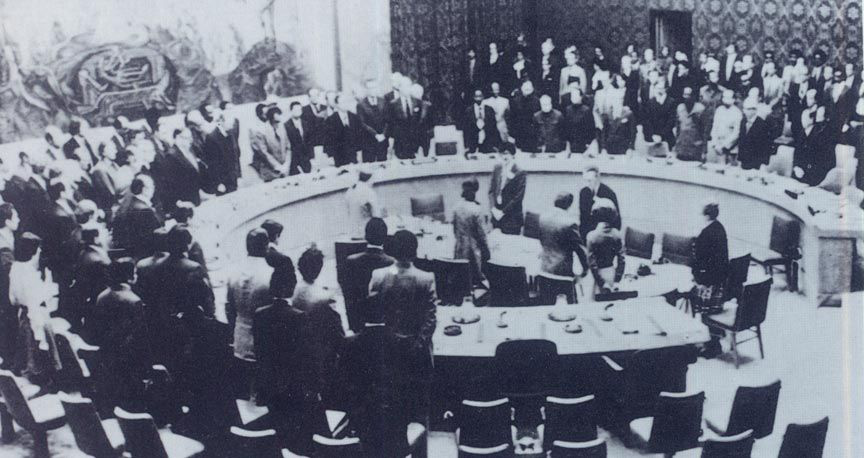 1976年1月12日,聯(lián)合國安全理事會成員國代表和觀察員開會時(shí),為周恩來的逝世默哀。
